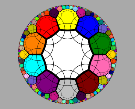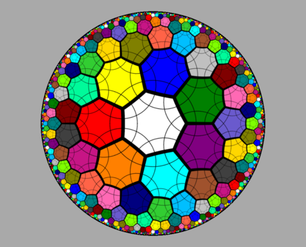 Figure 6.a: A 24-coloured \(\{7,3\}\) hyperbolic plane puzzle in MagicTile.
