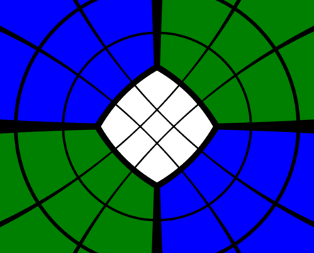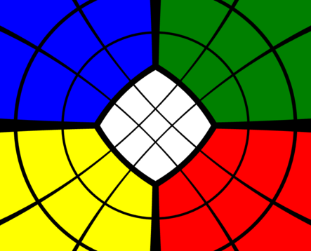 Figure 2.a: A 3x3x3 in MagicTile, based off a \(\{4,3\}\) stereographically projected onto a plane.