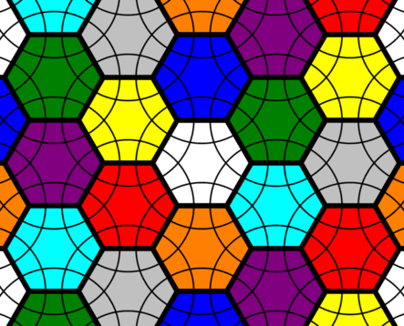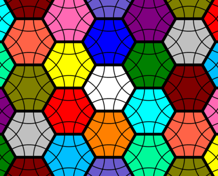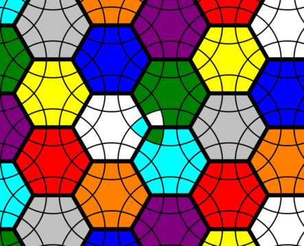 Figure 4.a: A 7-coloured \(\{6,3\}\) flat torus puzzle in MagicTile.